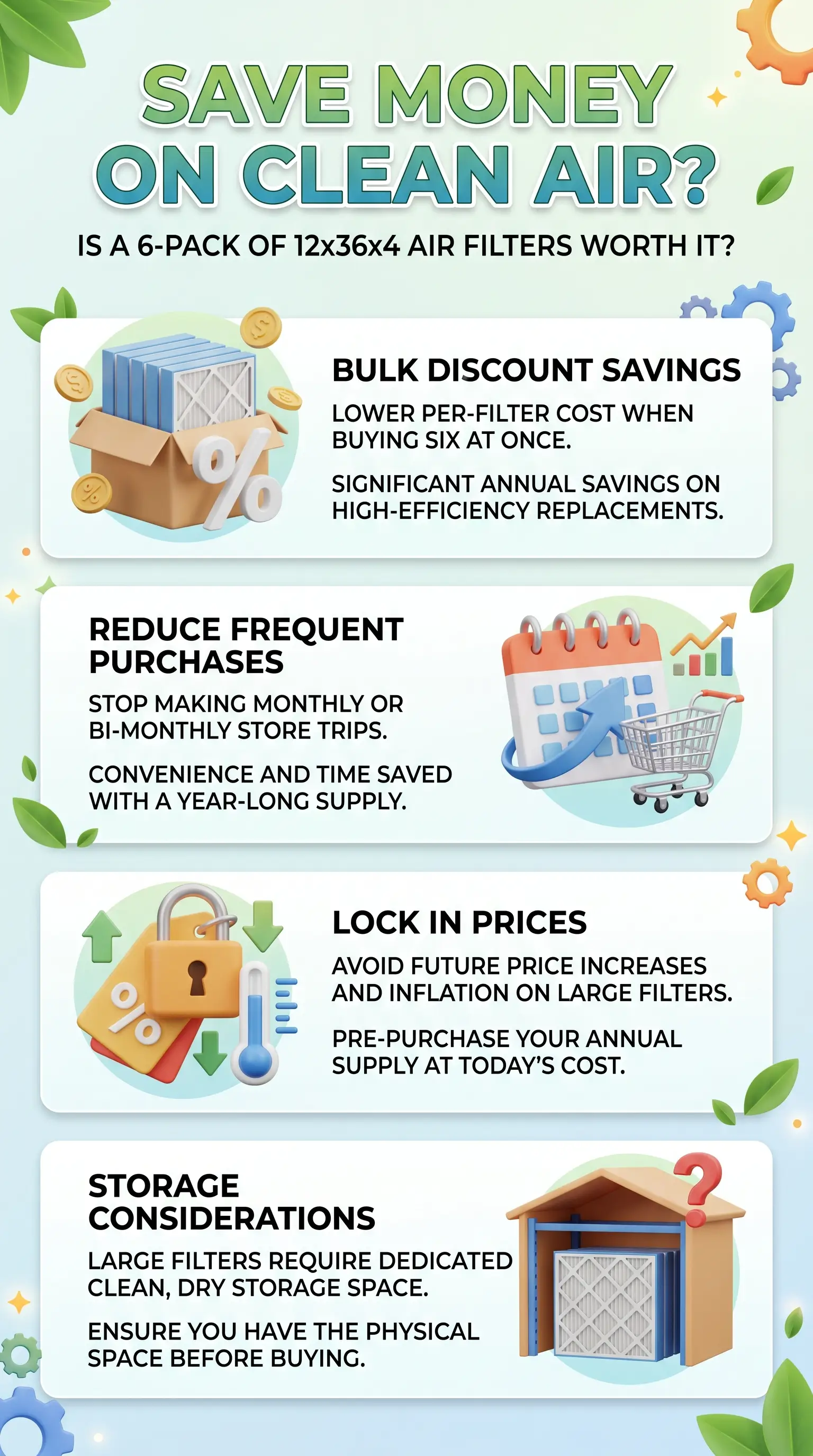 After a decade of manufacturing filters in the U.S. and looking at thousands of customer reorder patterns, we keep seeing the same split: households that stock a 6-pack change filters on schedule, and households buying singles almost always run overdue. Bulk saves money per filter, yes, but the bigger payoff is a full year of not having to think about the filter at all. — Filterbuy Air Quality Team